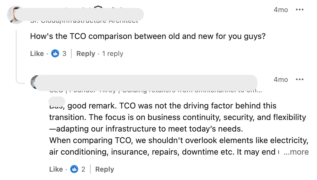 A while ago, I came across the following LinkedIn comments about the migration from on-prem hosting to public cloud hosting. It is a perfect example of the different forces at play and how we can have the wrong assumptions about them.