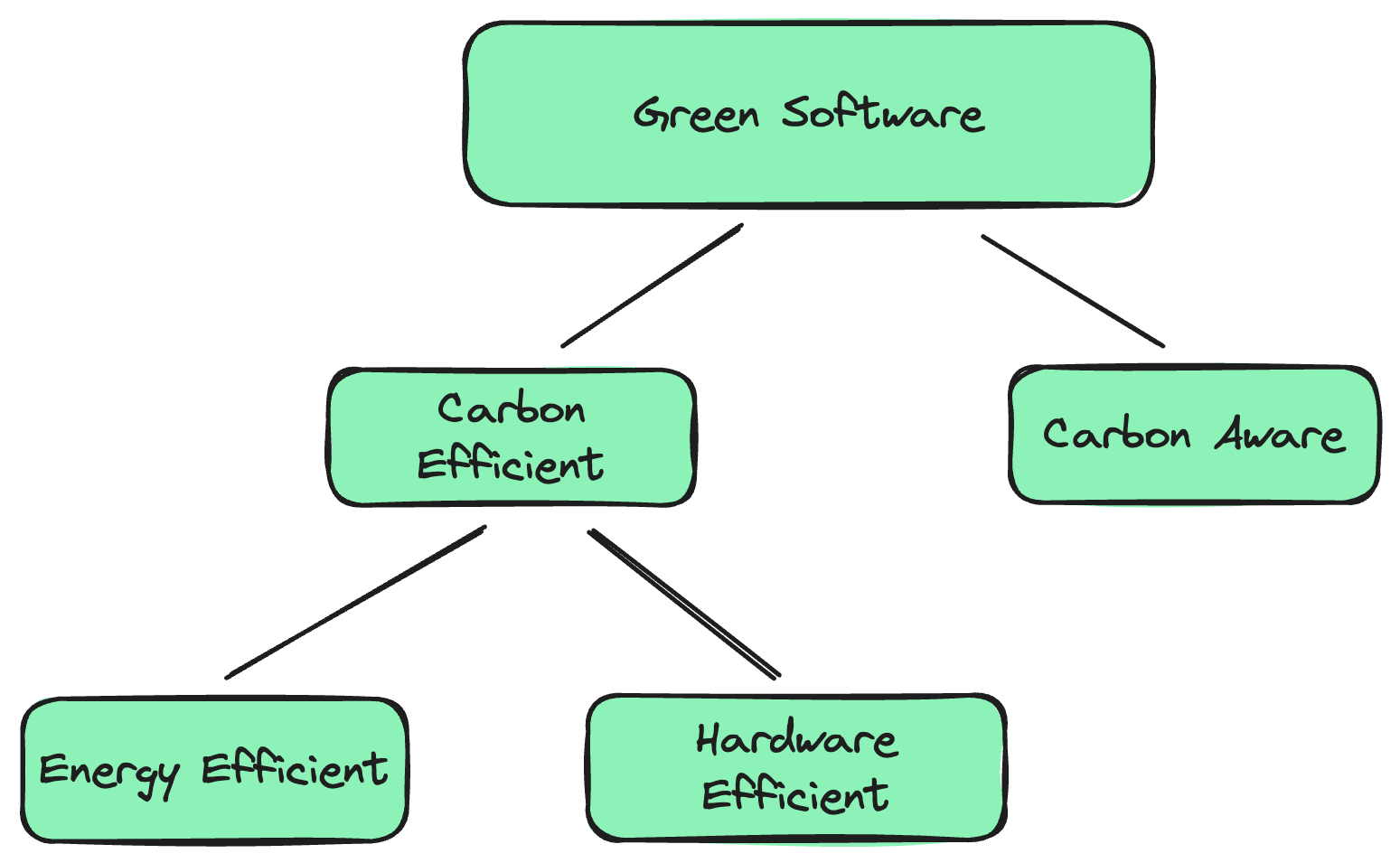 The 1st axe is to make software carbon-efficient, which can be split up into energy efficiency (delivering the same business value with less energy) and hardware efficiency (maximising what we do with the hardware, both in intensity and lifetime).